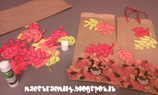 così i sacchetti del pane, che giacevano nuovi da anni in un cassetto acquistano nuova vita e, con qualche foglia e disegno si trasformano in cestini autunnali!